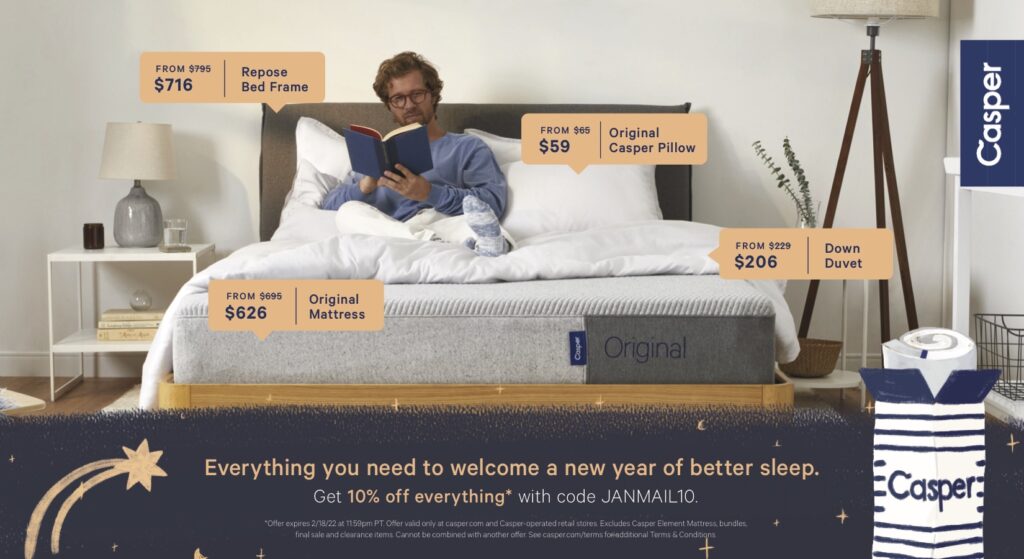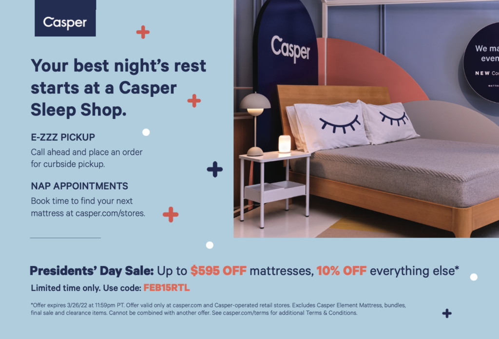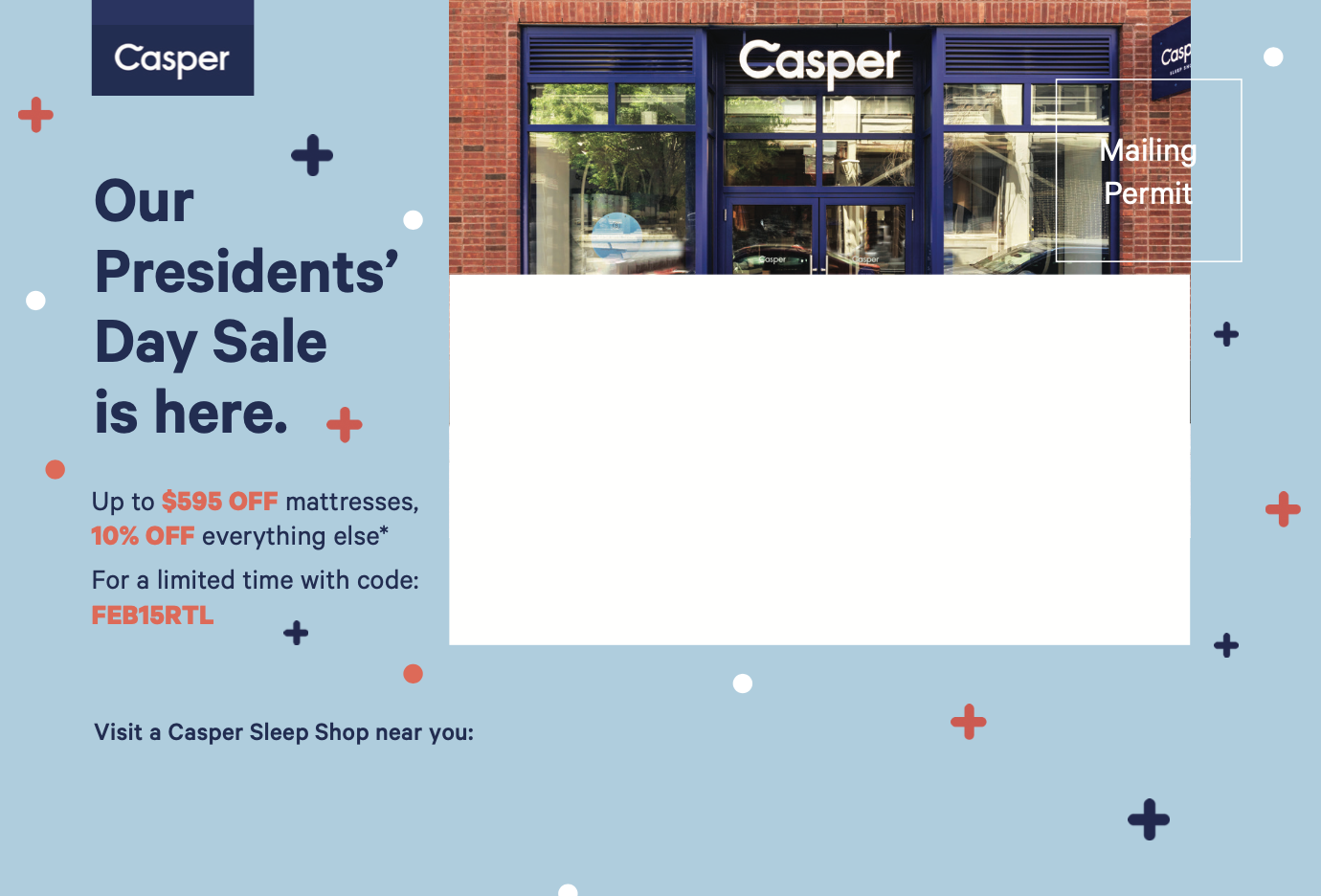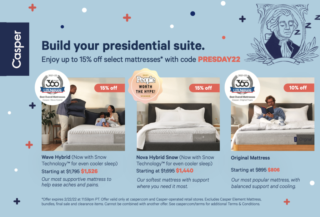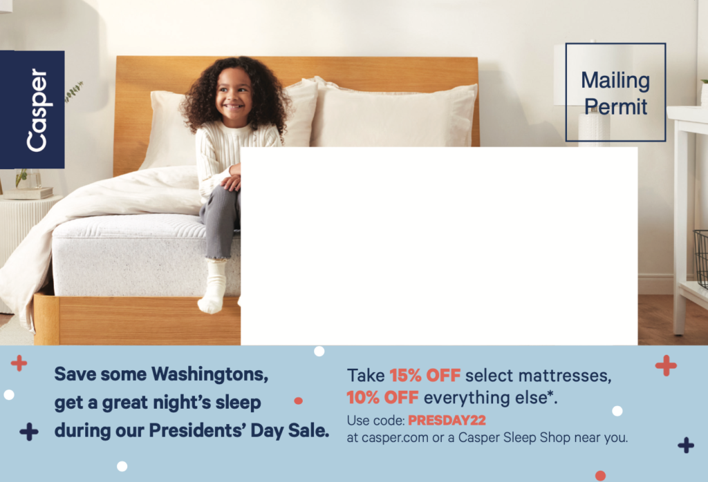Direct mailers, TV spot, and emails for Presidents’ Day Sale